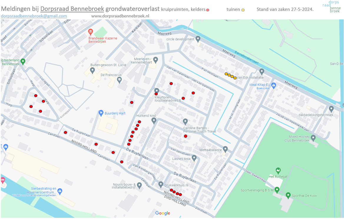 In oktober 2024 lijkt dat bij de meeste meetpunten effect te hebben. Meetpuntenkaart en doorgeven grondwateroverlast .