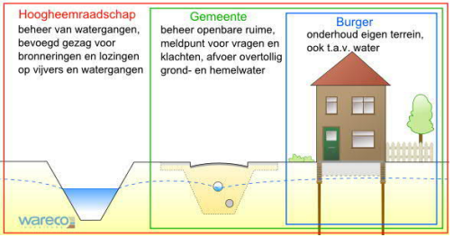 Voorlopig komen de gevolgen van de hoge waterstand voor de verantwoordelijkheid van de perceeleigenaar. Maar een perceeleigenaar kan en mag de grondwaterstand niet veranderen; dat is een bestuurlijke taak.